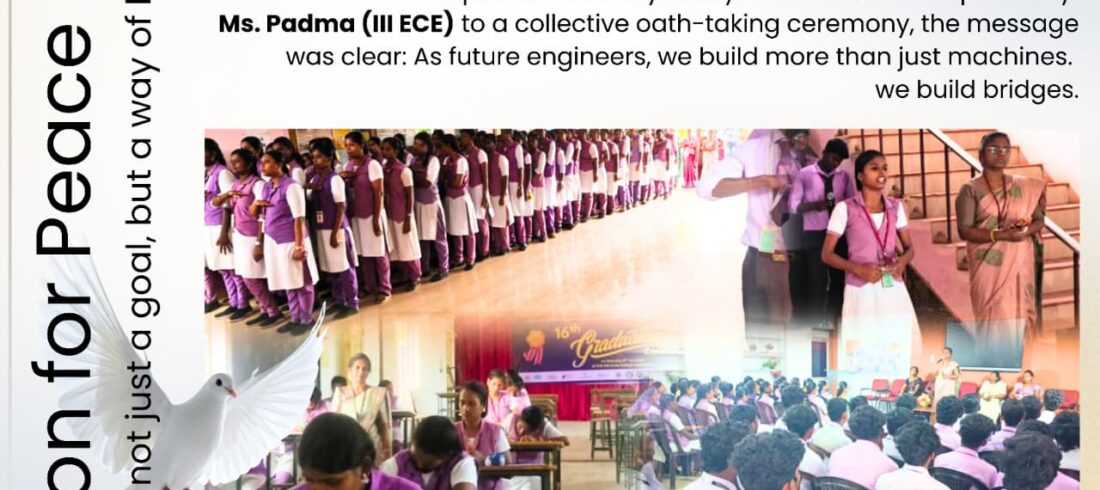 Sawyerpuram, Feb 24, 2026: Dr. G.U. Pope College of Engineering observed World Peace and Understanding Day with a special assembly, emphasizing unity, harmony, and social responsibility among students. The program featured a thought-provoking address by Ms. Padma (III ECE), followed by a collective oath-taking ceremony....