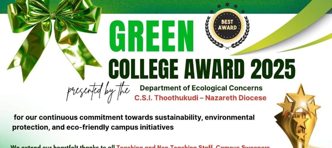 Sawyerpuram, October 30 — Dr. G. U. Pope College of Engineering, Sawyerpuram, has been conferred with the Green College Award 2025 by the Department of Ecological Concerns, C.S.I. Thoothukudi–Nazareth Diocese, in recognition of its consistent efforts towards maintaining an eco-friendly and sustainable campus environment. The...