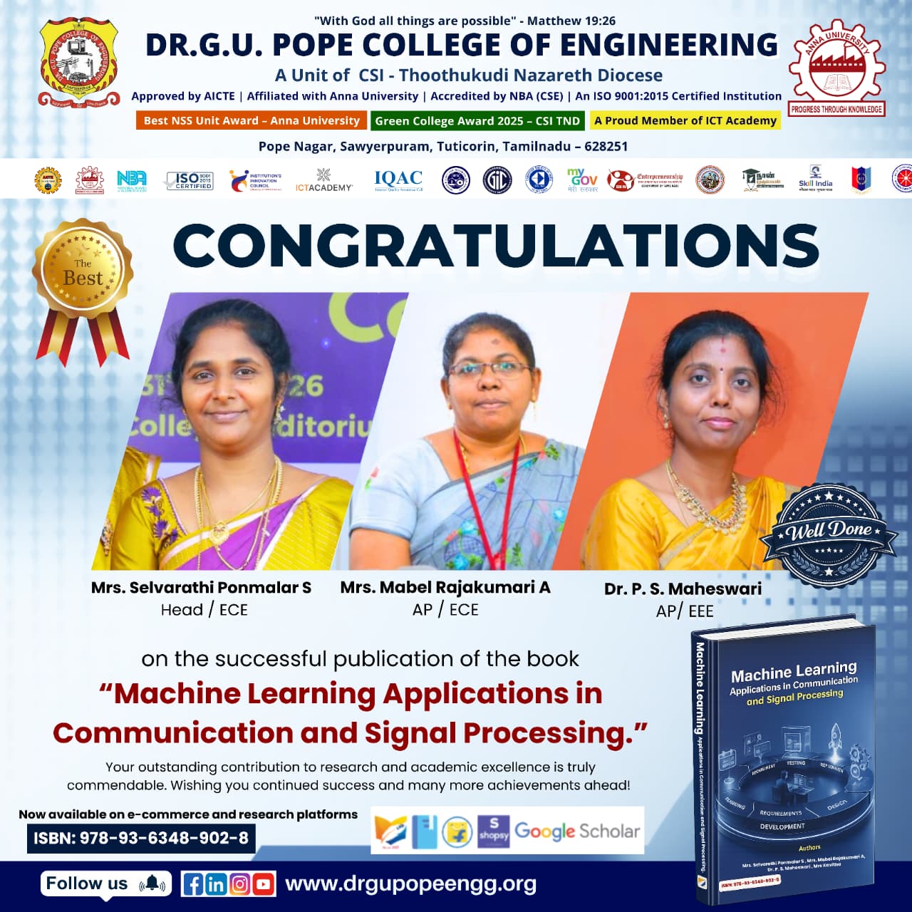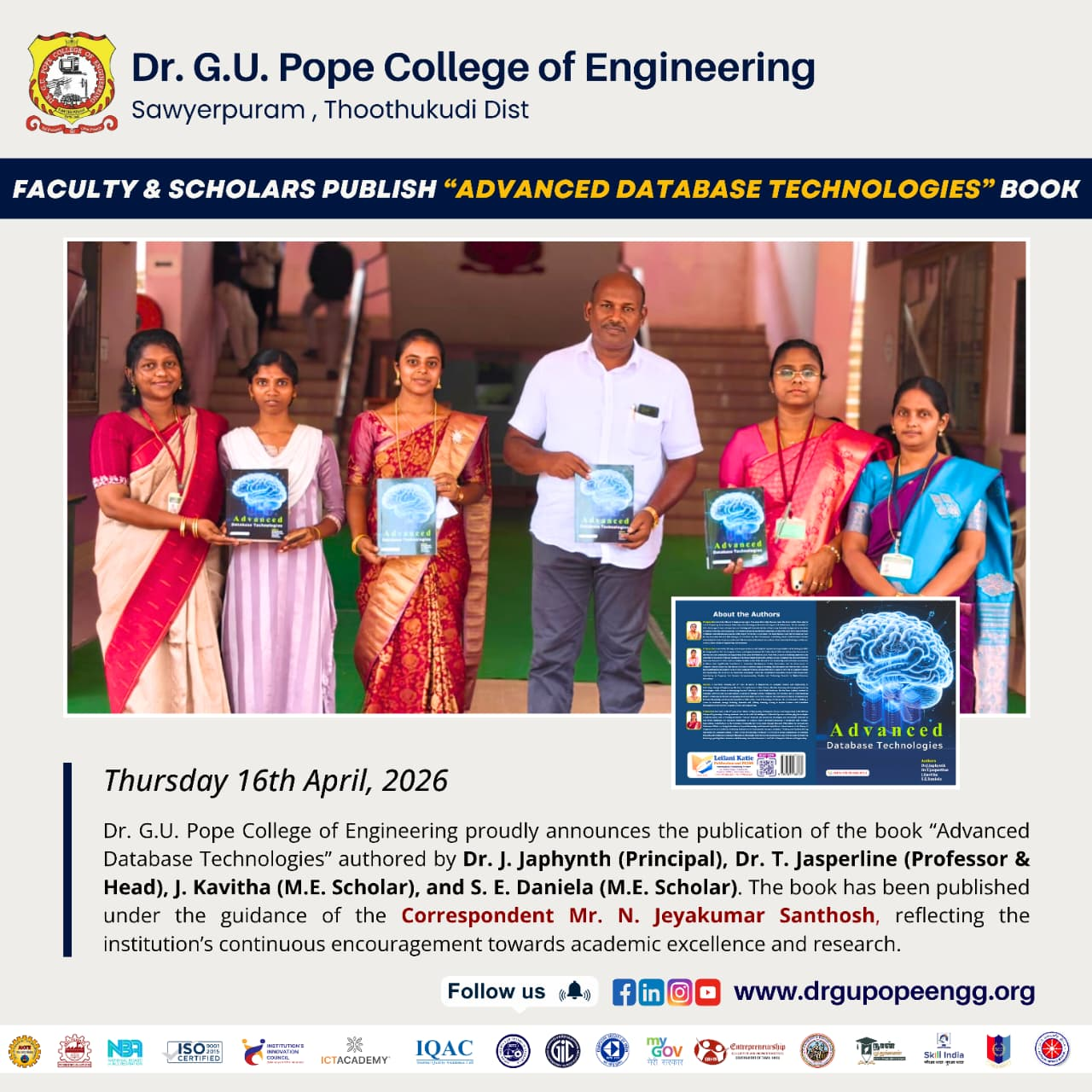 - Adv. K. Ravindran Charles, Secretary & Correspondent, encouraged students to leverage such opportunities to build successful careers in AI and Embedded Technologies.