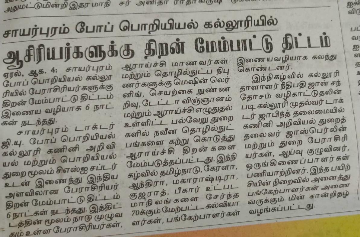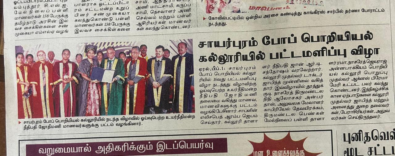 Dr G U Pope College of Engineering is thrilled to announce a groundbreaking stride towards a visionary future. As a beacon of innovation and excellence, our institution is set to redefine the landscape of engineering education. This press release marks the beginning of an exciting chapter for Dr G U Pope College of Engineering, as we unveil our commitment to revolutionize engineering education. Our vision is to empower students with the skills, knowledge, and mindset to navigate the complexities of the ever-evolving technological landscape.